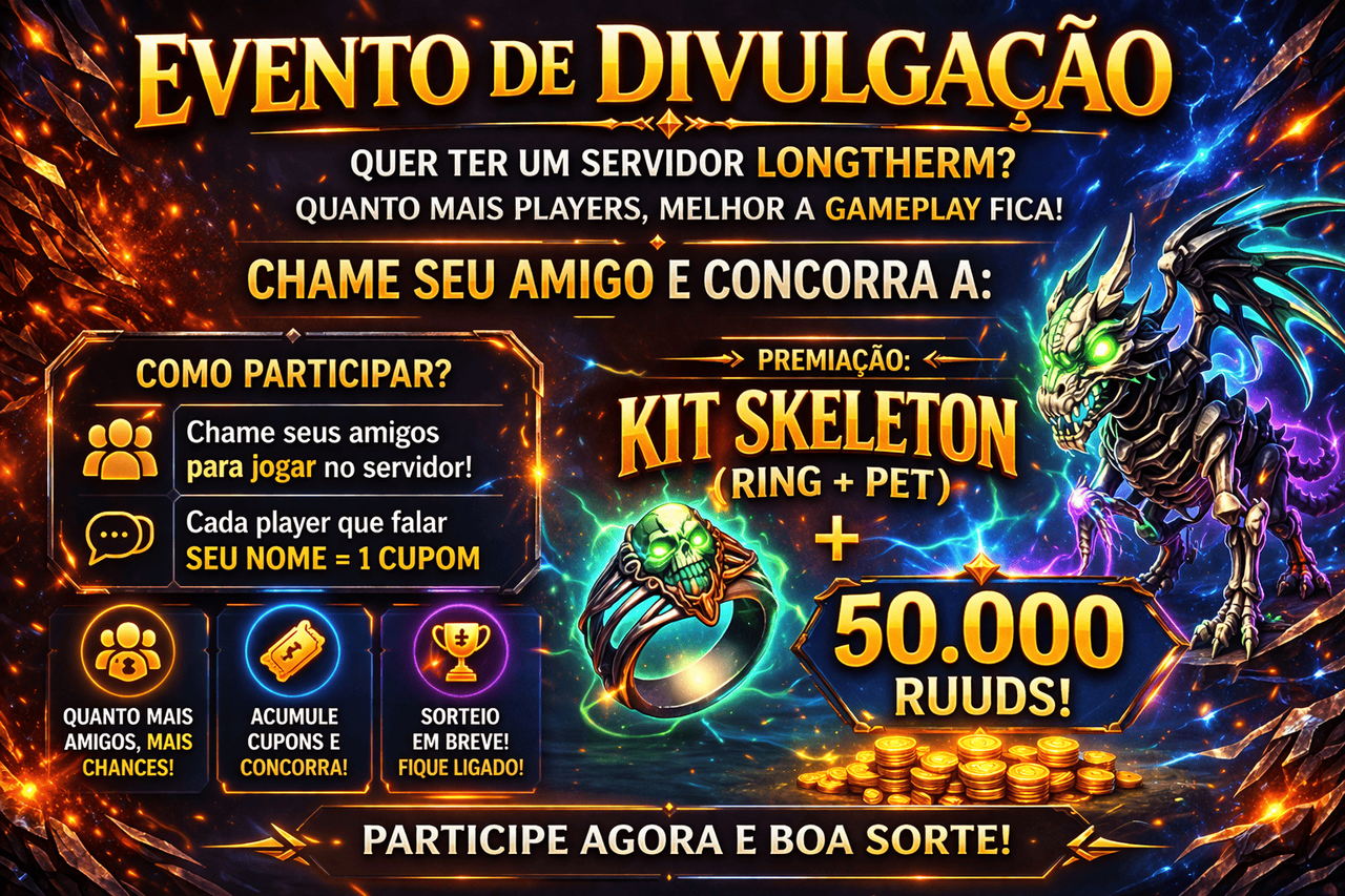 👉 Não perca tempo! Chame seus amigos, fortaleça o servidor e concorra a recompensas exclusivas!